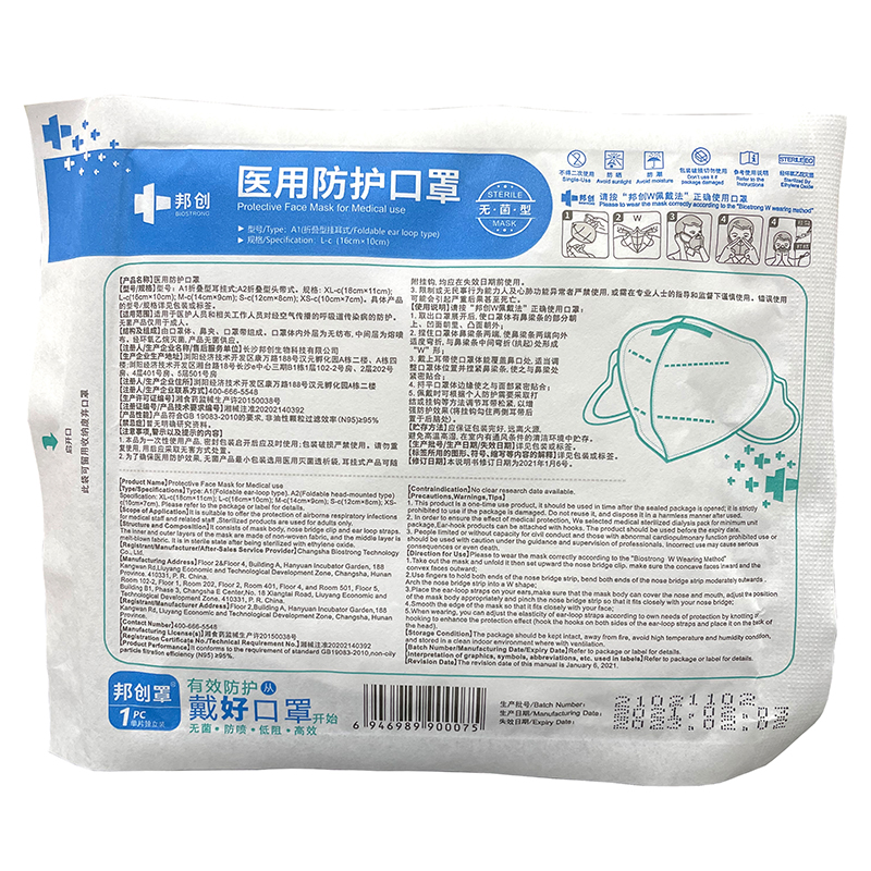 Product Name:mascherine uso medico 1pcs/pack 50pcs/box Medical Nonwoven Eo Sterile Mask Disposable100,000-level aseptic purification workshop