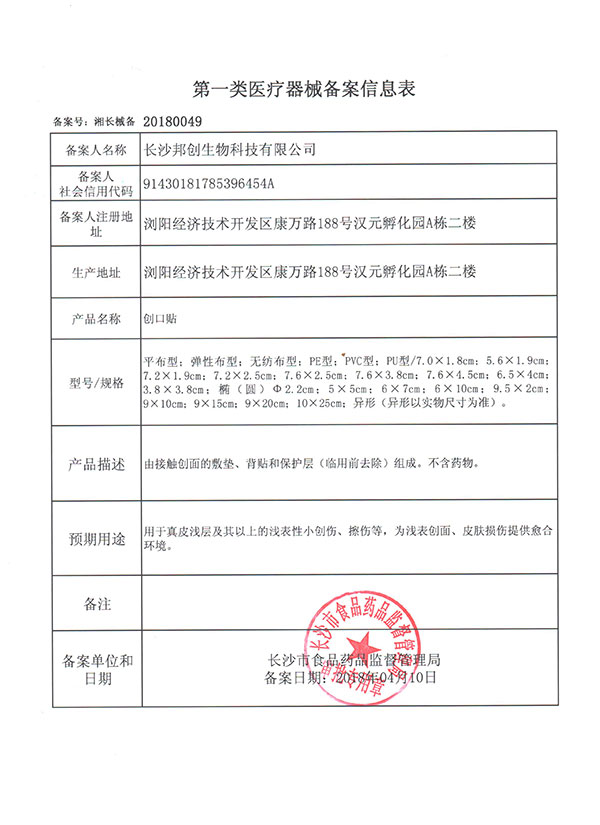 創(chuàng)口貼信息表