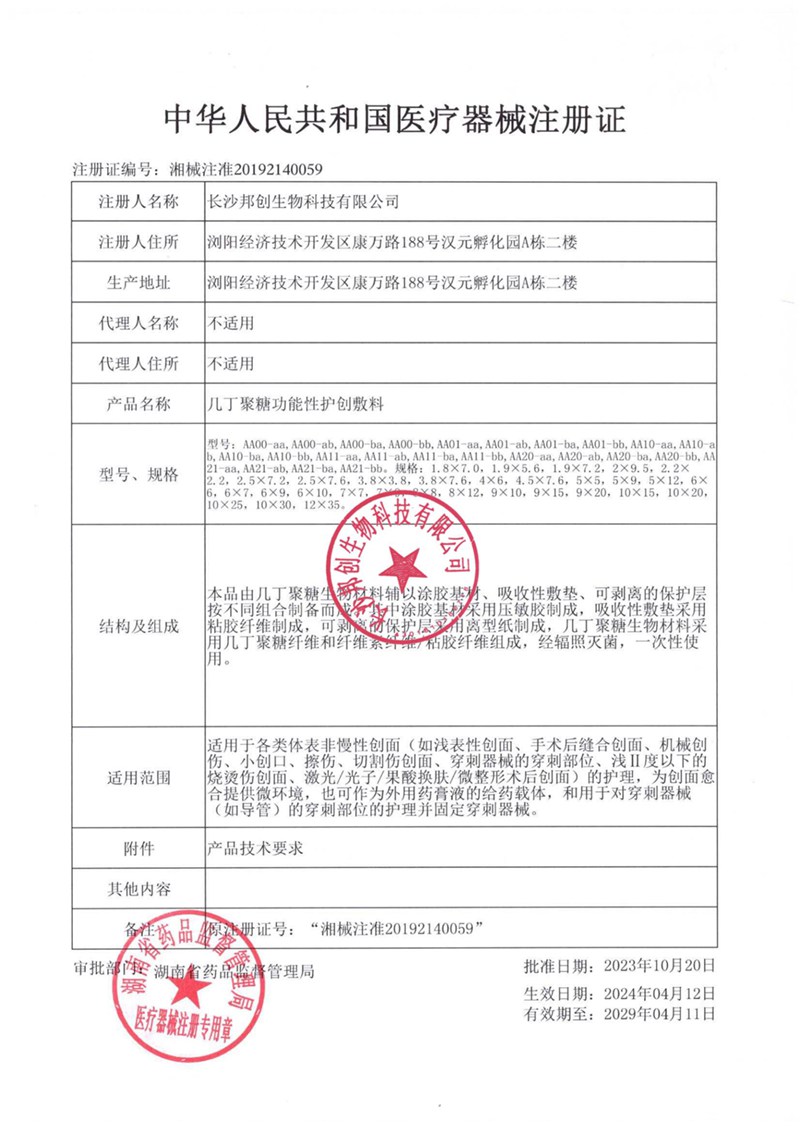 幾丁聚糖功能性護(hù)創(chuàng)敷料-注冊證